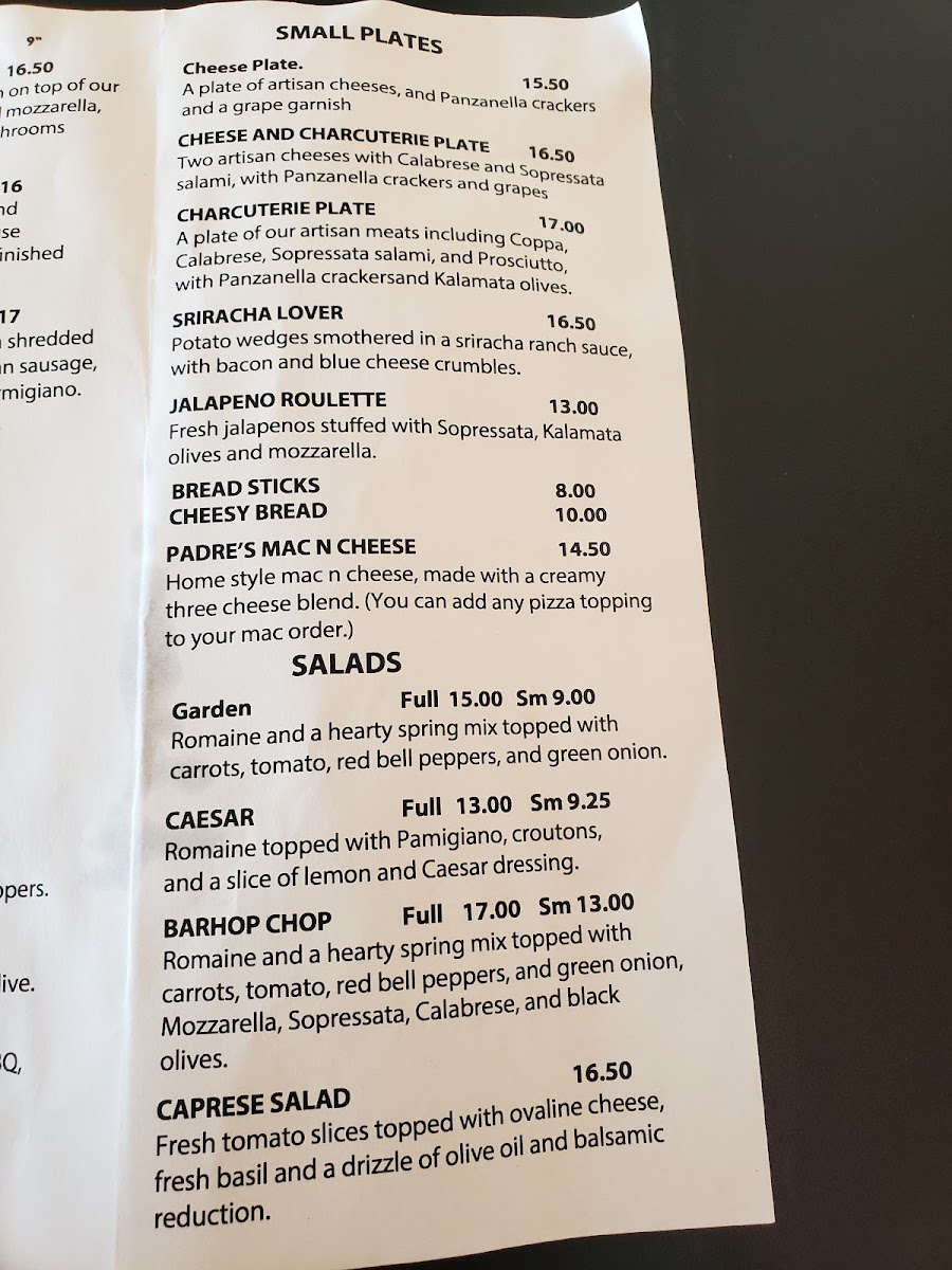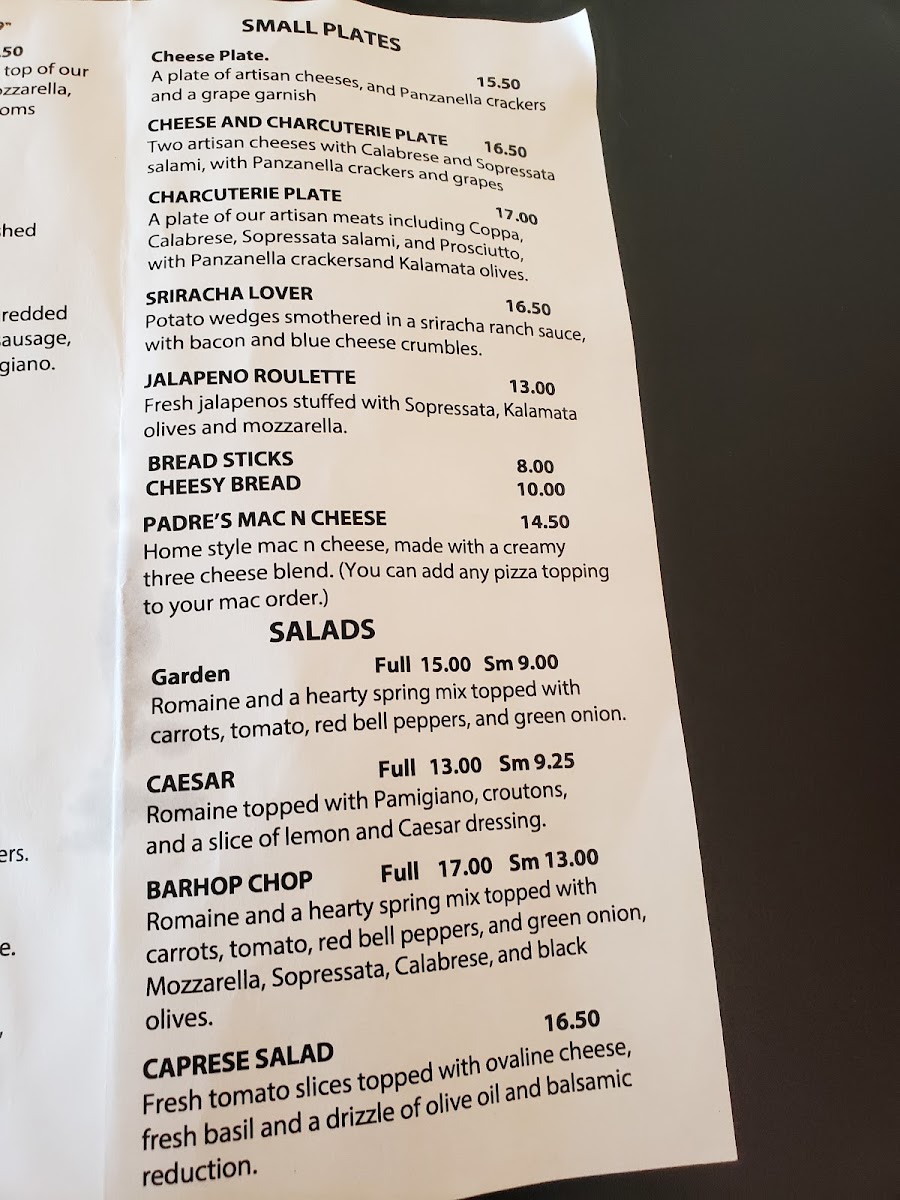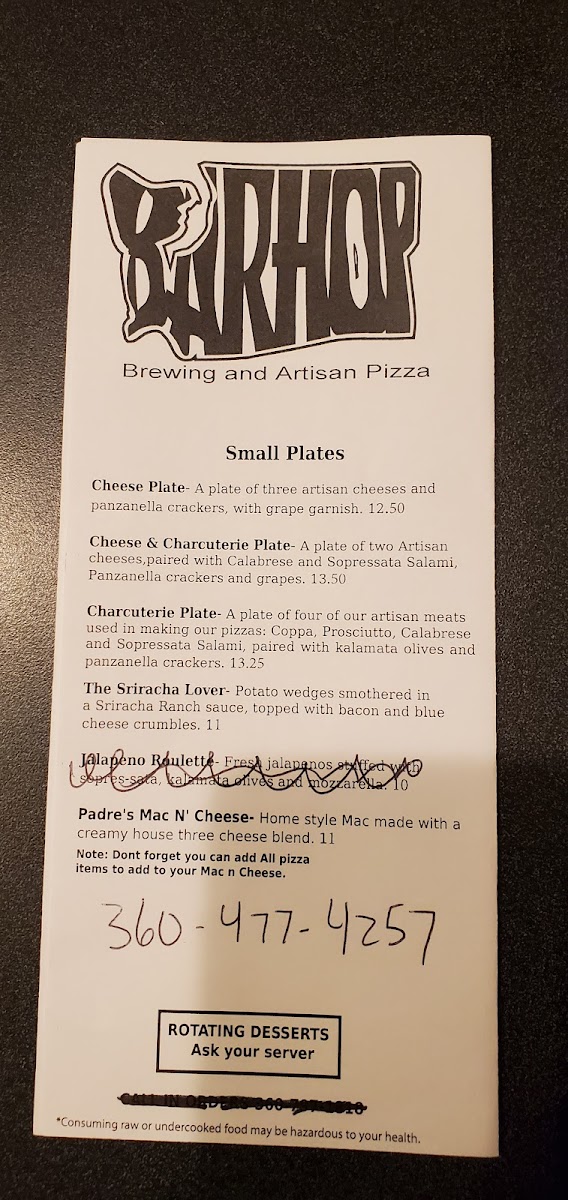 From a reviewer’s point of view, the menu at Barhop Brewing And Artisan Pizza, located at 845 W Washington St, Sequim, WA 98382, offers a well-curated and satisfying snapshot of what the restaurant does best-simple ingredients, artisan techniques, and a strong craft-beer identity. As a conclusion to the overall menu experience, it’s clear that balance is the guiding theme here. The Small Plates such as Cheese Plate, Cheese And Charcuterie Plate, Charcuterie Plate, Bread Sticks, and the bold-flavored Sriracha Lover are ideal for sharing and set the tone for a relaxed yet refined dining experience. Moving into the fresher side of the menu, the salads-Garden, Caesar, Barhop Chop, and Caprese Salad-provide crisp, classic options that complement the richer items without feeling like an afterthought. The heart of the menu lies in the Artisan Pizza selection, where staples like Cheese Pizza and Margherita sit confidently alongside more character-driven choices such as Pizza Sopressata, Salsiccia, and Pizza Flambe, showcasing both traditional Italian influence and house creativity. Rounding things out, the Others se